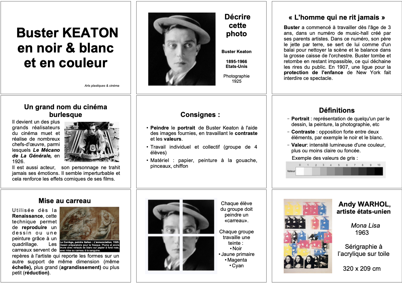 Les élèves de 6°6 sont allés voir Le Mécano de la Généralede Buster Keaton, dans le cadre du dispositif Collège au cinéma. Ils ont ensuite travaillé à partir d'un portrait photographique du cinéaste, en cours d'arts plastiques...
